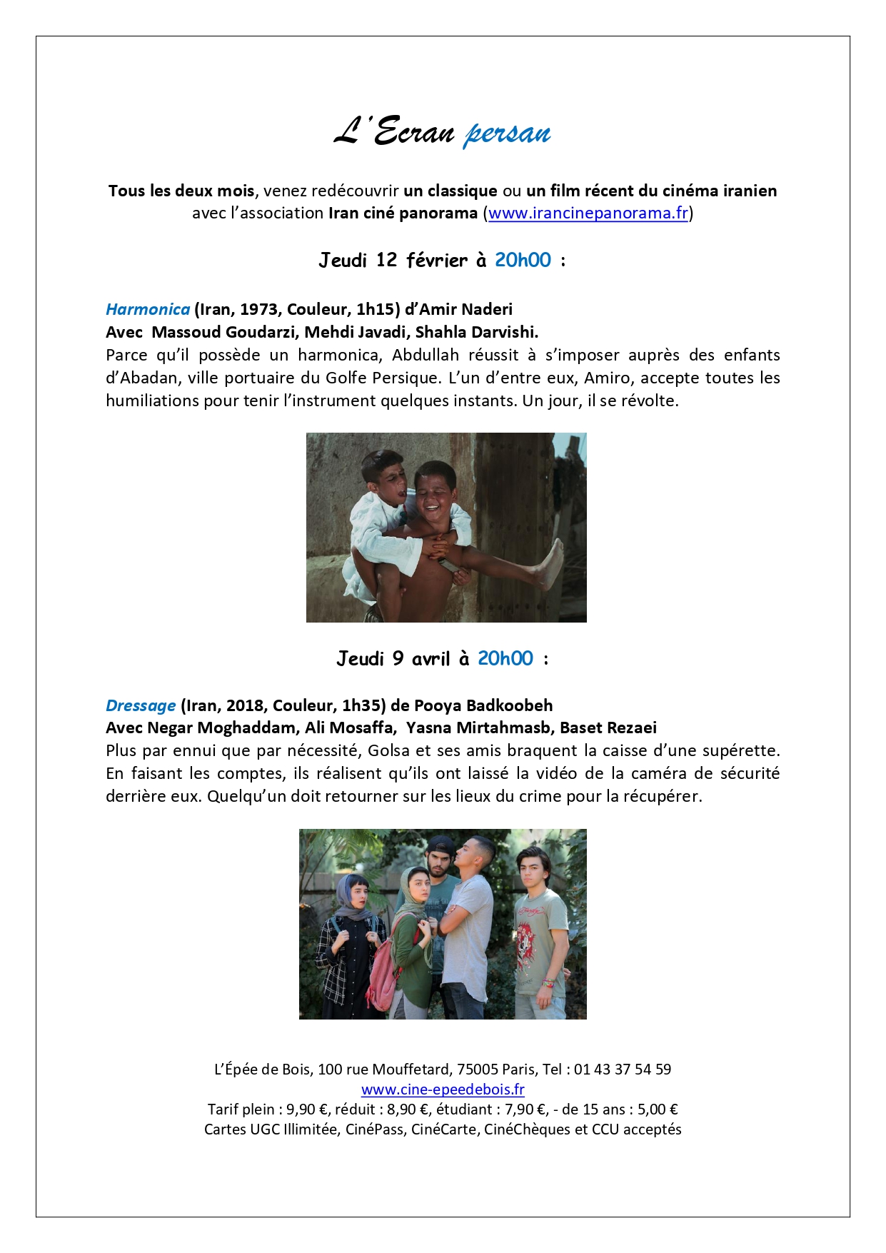 Le ciné-club l’Ecran persan vous souhaite une bonne année 2026 et vous donne rendez-vous pour la suite de son ciné-club à l’Epée de Bois, 100 rue Mouffetard à Paris.