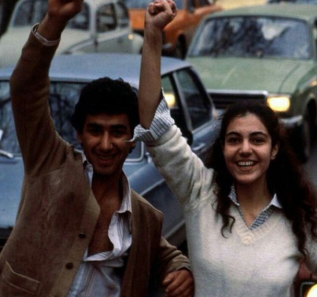 C’est dans ce contexte qu’éclate l’insurrection actuelle partie du Bazar de Téhéran, le dimanche 28 décembre 2025, après la chute du rial. Beaucoup de gestes, de slogans, de chansons montrent une montée en puissance des royalistes. On entend ainsi : « Ceci est la dernière bataille, Pahlavi reviendra ! » mais aussi « Mort au dictateur ! », une parole qui peut être prononcée par les mêmes ou par d’autres. Le drapeau du Lion et du Soleil est le seul que l’on voit contre le drapeau de la République islamique. Souvenons-nous qu’au début du mouvement « Femme, vie, liberté », on trouvait souvent dans la bande blanche de l’étendard, lors des manifestations de la diaspora, la devise formée par les trois mots sans aucun autre emblème. Il est révélateur qu’une image montrant deux amoureux en train de s’embrasser en pleine rue ait été mise en avant par les médias alors qu’elle date de 2022 comme s’il s’agissait de retrouver un symbole qui évoquerait « Femme, vie, liberté ». Si la vidéo d’une jeune femme allumant sa cigarette en brûlant le portrait d’Ali Khamenei, le guide suprême, a fait le tour du monde, elle a été prise, comme on le sait maintenant, au Canada et non en Iran. La décontraction qu’on y lit rappelle 2022 tout en reproduisant l’action d’Omid Sarlak mais sans les mots violents qui l’accompagnaient.